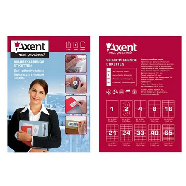 Етикетка самоклеюча Axent 70x42,4 (21 на листі) с/кл (100 листів) (2464-A)