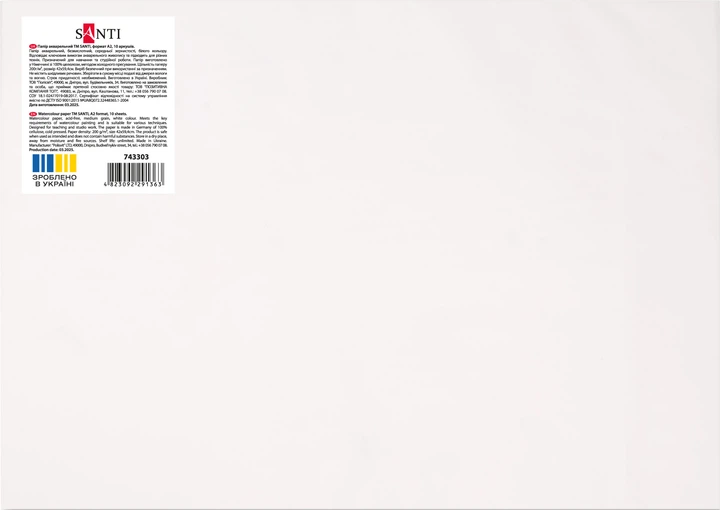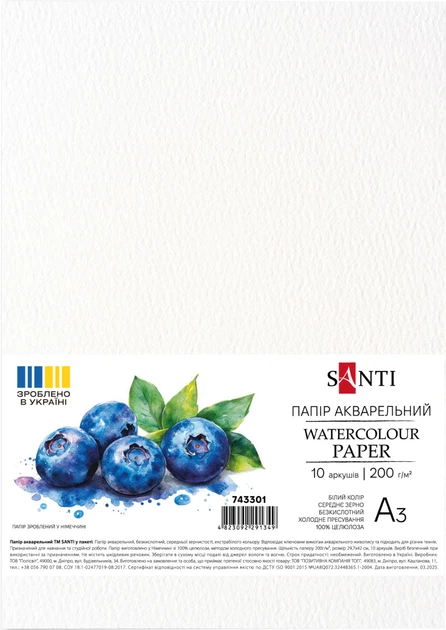 Папір акварельний Santi А3 10 аркушів 200 г/м2 пакет (743301)