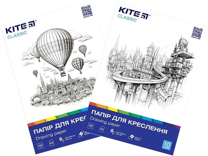 Набір паперу для креслення Kite Classic А4 + А3 200 г/м2 10 + 10 аркушів 2 шт (K-269/K-270)
