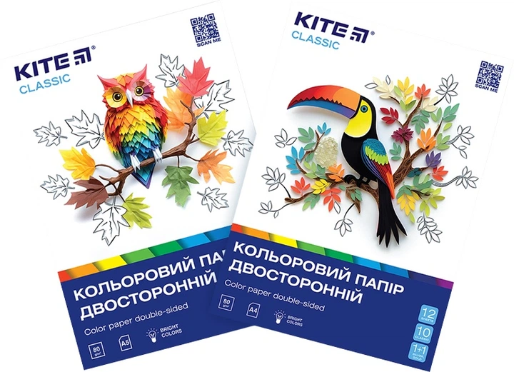 Набір паперу кольорового двостороннього Kite Classic А4 + А5 80 г/м2 10 + 12 аркушів 2 шт (K-287/K-293)