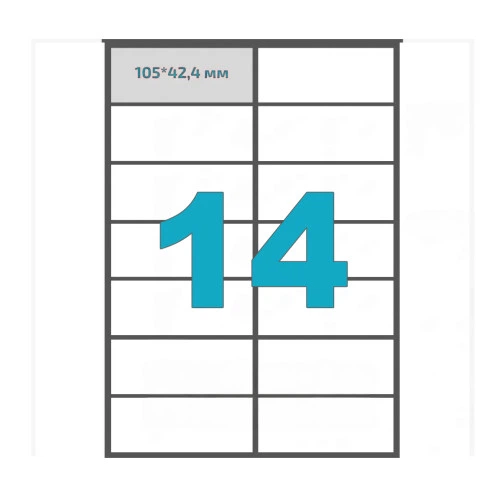 Етикетки самоклеючі (14 шт. на аркуші, 105 мм. х 42,4 мм., 100 арк. в упак.) Упаковочка # 2114