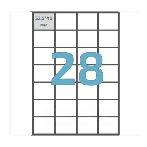 Етикетки самоклеючі (28 шт. на аркуші, 52,5 мм. х 40 мм., 100 арк. в упак.) Упаковочка # 2128