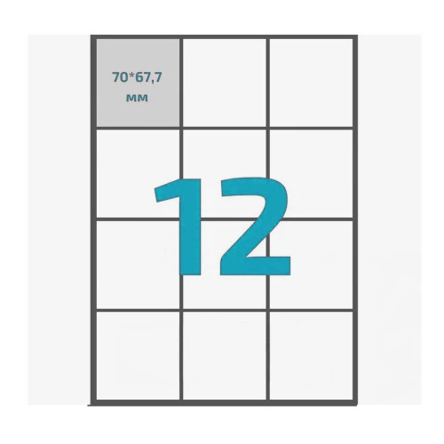Етикетки самоклеючі (12 шт. на аркуші, 70 мм. х 67.7 мм., 100 арк. в упак.) Упаковочка # 2112