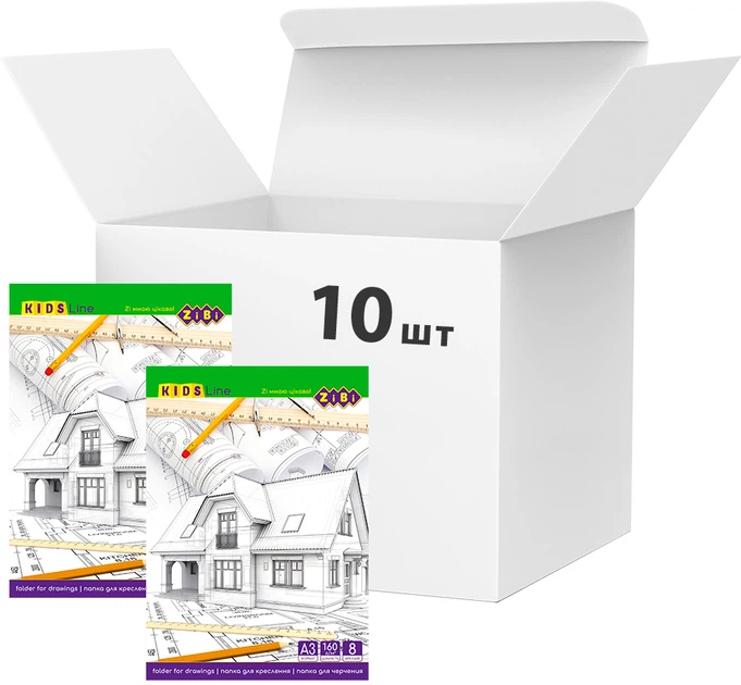 Набір папок для креслення ZiBi A3 8 аркушів 160 гр/м 10 шт. Асорті (ZB.1410)
