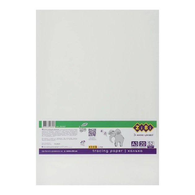 Калька ZIBI, А3, 20 аркушів, 52 г/м2 (ZB.1937)