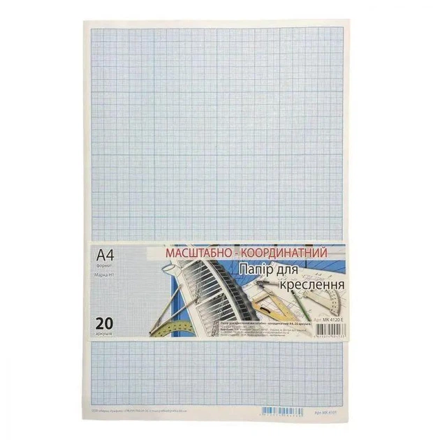 Папір масштабно-координатна А4, 80г/м2, 20 листов Офорт ( Міліметрівка )