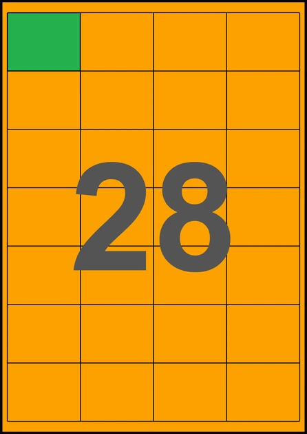 5040мм ПОМАРАНЧЕВИЙ Самоклеючий папір А4, 28 Етикеток на листі, Упаковка 100 листів