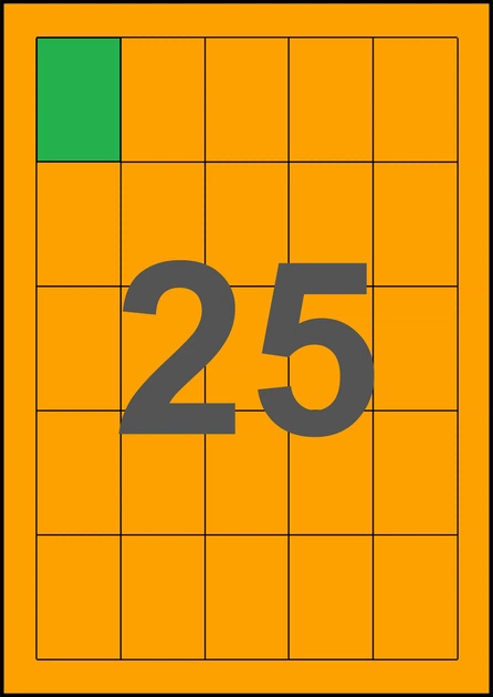 4259,4мм ПОМАРАНЧЕВИЙ Самоклеючий папір А4, 25 Етикеток на листі, Упаковка 100 листів