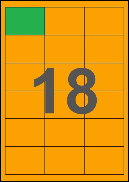 6345мм ПОМАРАНЧЕВИЙ Самоклеючий папір А4, 18 Етикеток на листі, Упаковка 100 листів