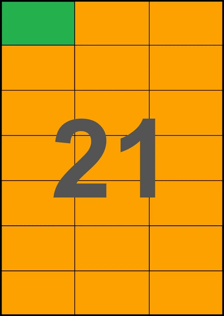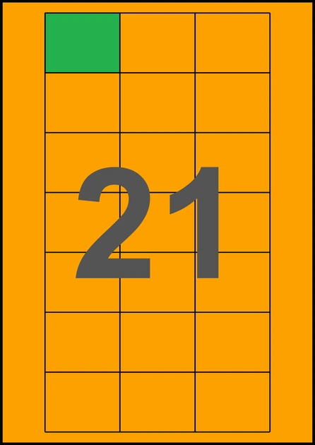 7042,4мм ПОМАРАНЧЕВИЙ Самоклеючий папір А4, 21 Етикетка на листі, Упаковка 100 листів