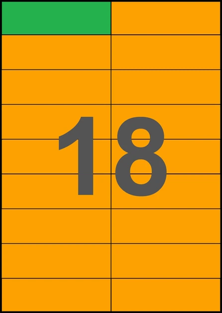 10533мм ПОМАРАНЧЕВИЙ Самоклеючий папір А4, 18 Етикеток на листі, Упаковка 100 листів