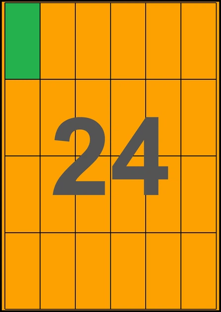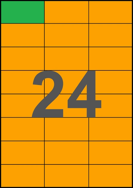 7037,12мм ПОМАРАНЧЕВИЙ Самоклеючий папір А4, 24 Етикетки на листі, Упаковка 100 листів