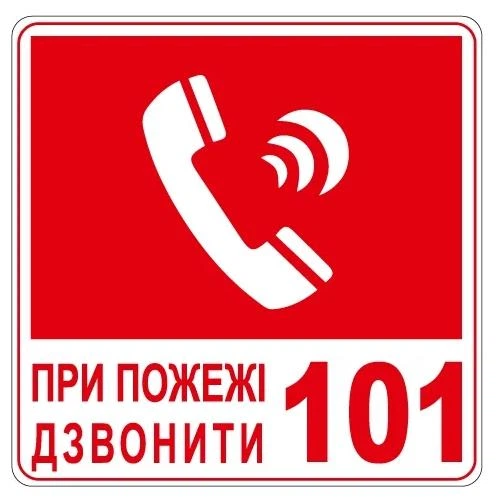 Стікер "При пожежі дзвонити 101" 136х136 мм 1 шт