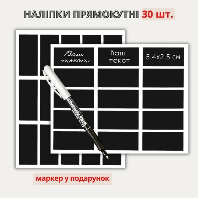 Наліпки прямокутні 5,4 х 2,5 см (30 шт.) + маркер