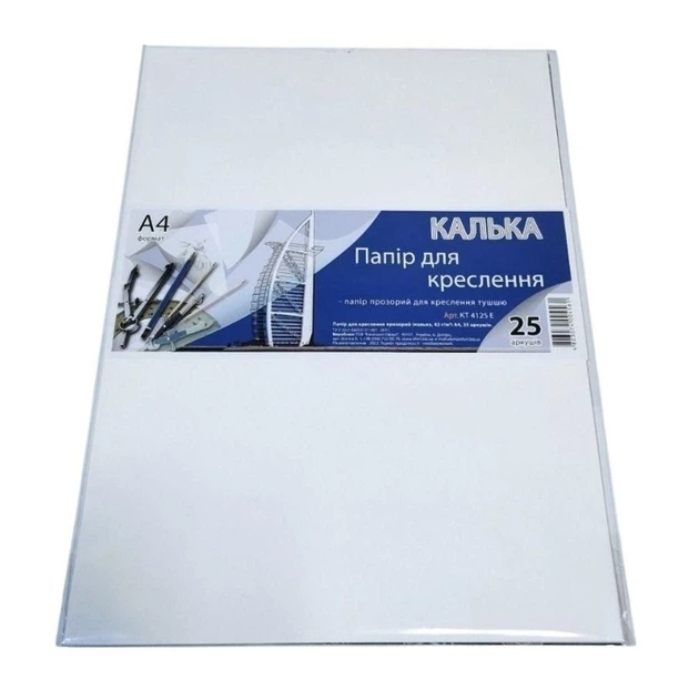 Калька прозора для креслення тушшю в аркушах КТ 4125 Е, формат А4 щільність 42 г/м2 упаковка 25 арк (7227)