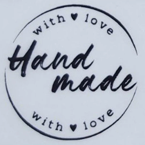 Етикетка прозрачна кругла "Hand made with love". Упаковка 50 шт., діаметр 50 мм
