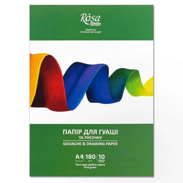 Папка для гуаші А4 (21х29,7см), 10л, Дрібне зерно, 180г/м2, ROSA Studio - папір для гуаші, акрилу і темпери