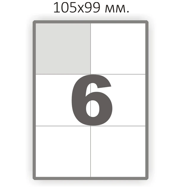 Матовий самоклеючий папір А4 Swift 100 аркушів 6 етикеток 105x99 мм ПОСИЛЕНИЙ КЛЕЙ (арт. 01893)