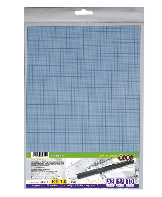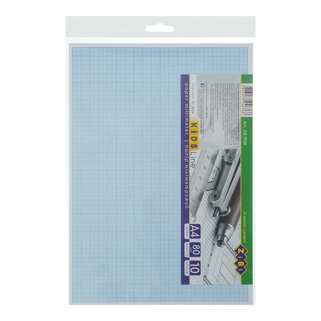 Папір міліметровий А4 10 аркушів ZB.1930 KIDS Line ZiBi, в пакеті (4823078946768)