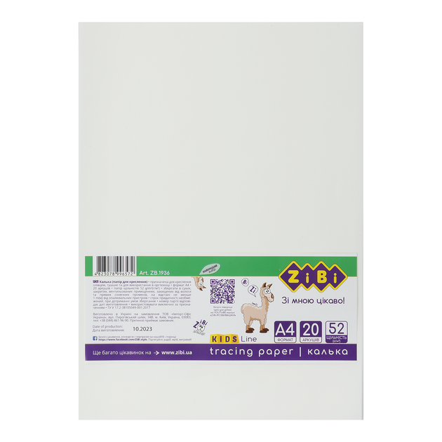 Калька ZIBI А4, 20 аркушів, щільність 52 г/м2