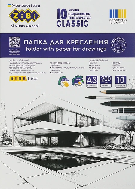 Папір для креслення ZiBi Classic A3, 10 аркушів, 200 г/м (ZB.1412)
