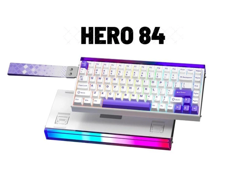 Ігрова Клавіатура AULA HERO 84 HE White-Purple Магнітні світчі. Дротова 8000Hz/s. RGB Панель, 84 keys, Switch 0.01mm. Rapid