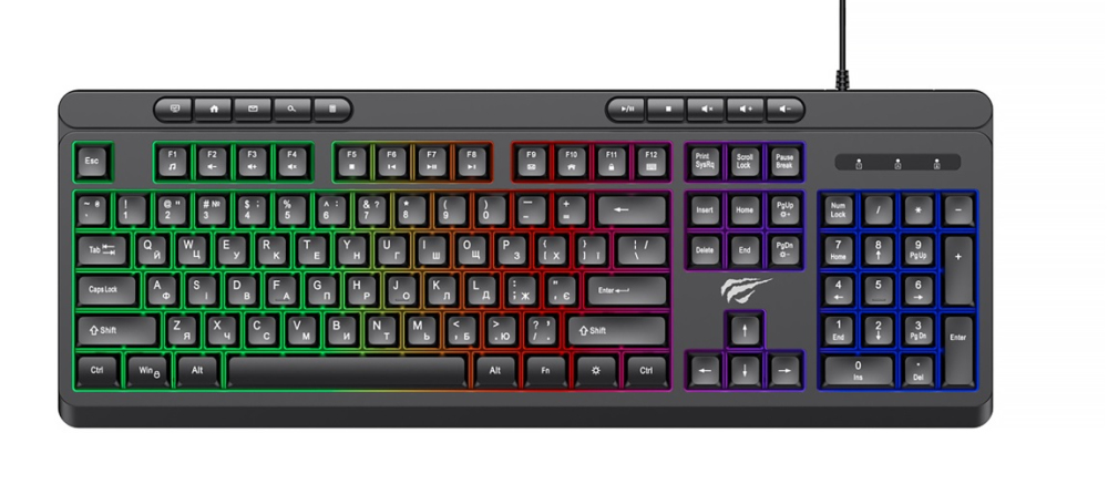 Тип: провідна, мембранна, кількість клавіш - 114, підсвітка: RGB, розміри: 449mm х 162mm х 38mm, довжина кабелю: 1.5м