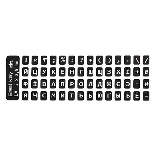 Наклейки на клавіатуру мініатюрні Best key mini непрозорі чорні літери білі (56 клавіш) 1256987453
