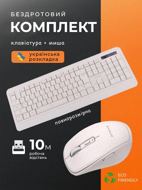 Комплект безпровідна клавіатура і мишка бежевий колір українська розкладка повнорозмірна