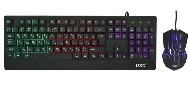 Ігровий набір 2в1 дротова клавіатура з кольоровою підсвіткою + оптична мишка UKC, клавіатура з мишкою для ПК та ноутбука Чор