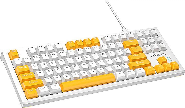 Клавіатура ігрова механічна Aula F3032 із змінними жовтими клавішами ENG/UKR keycaps plus 21 Yellow keys KRGD Red USB Біла