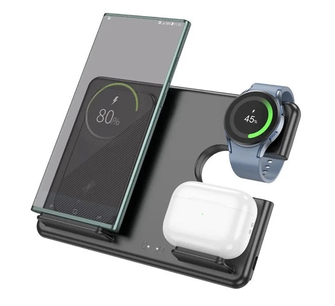 Безпровідна зарядка підставка Hoco CQ2 3в1 на 5-15W QI 3А чорна