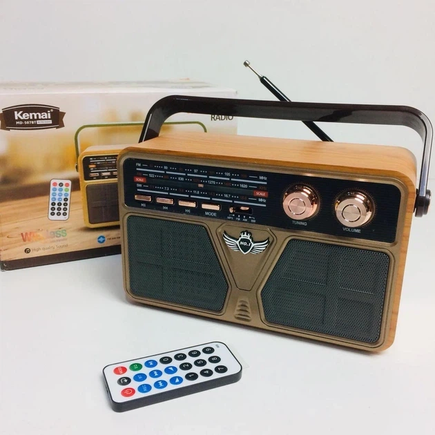 Ретро радіоприймач Kemai MD-507BT Bluetooth USB SD FM AM SW акумулятор 18650 з пультом та телескопічною антеною