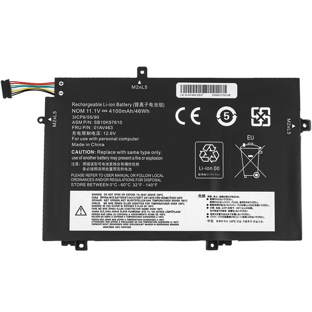 Батарея для LENOVO ThinkPad: L490, L580, L590, E490, E590 L17L3P52 11.1V 4100mAh 46Wh