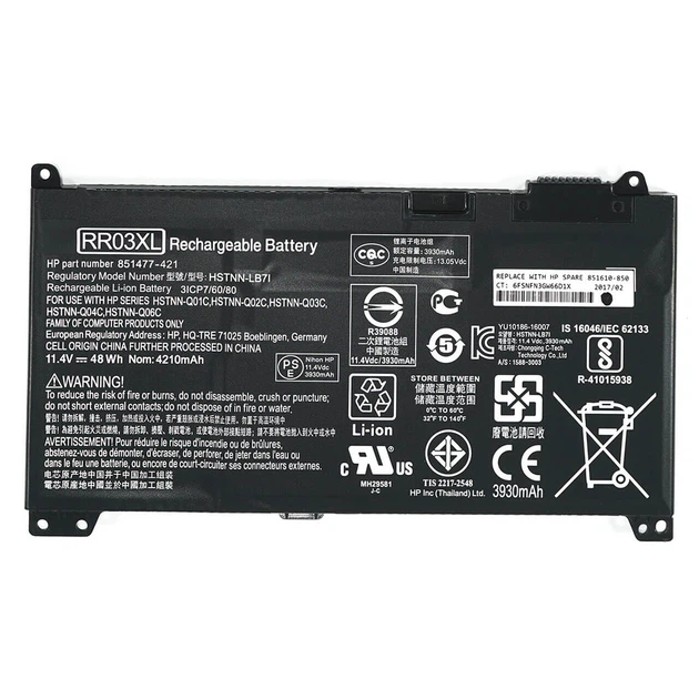 Батарея для ноутбука HP Omen 15 HSTNN-UB7A, 5150mAh (61.6 Wh), 6cell, 11.55 V, Li-ion, чорний,