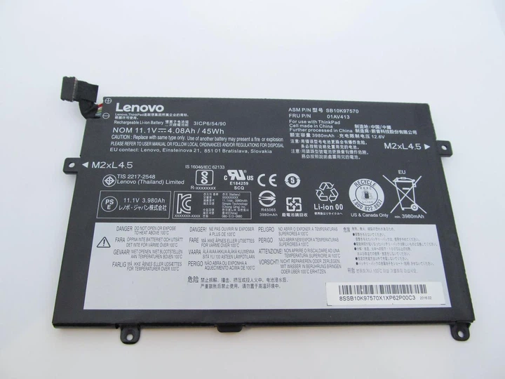 Батарея для ноутбука Lenovo ThinkPad E470 01AV413, 3980mAh (45Wh), 3cell, 11.1V, Li-ion, чорна,