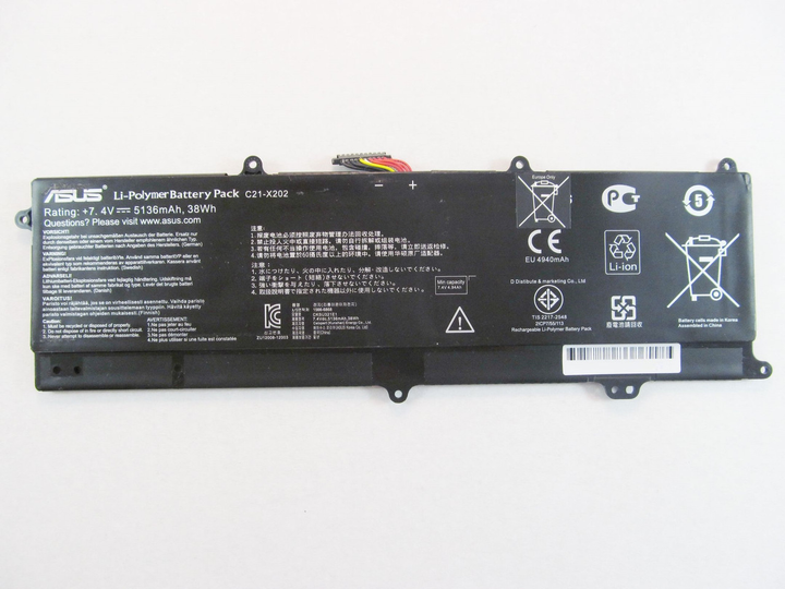 Аксесуари для ноутбука Asus VivoBook X202E C21-X202, 5136mAh (38Wh), 4cell, 7.4V, Li-Pol, чорна,