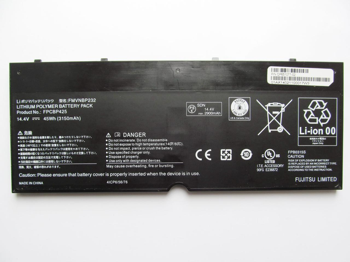 Аксесуари для ноутбука Fujitsu LifeBook U745 FPCBP425, 3150mAh (45Wh), 4cell, 14.48V, Li-Pol, чорна