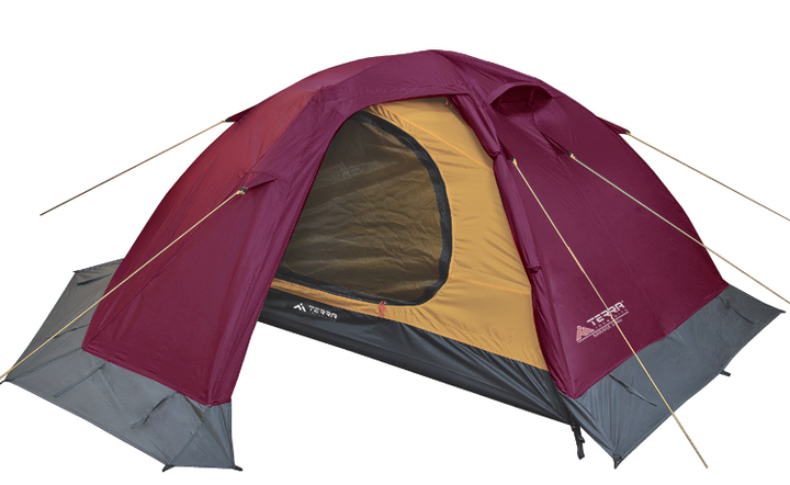 Двомісний намет із захисною спідницею та двома входами, вишневий