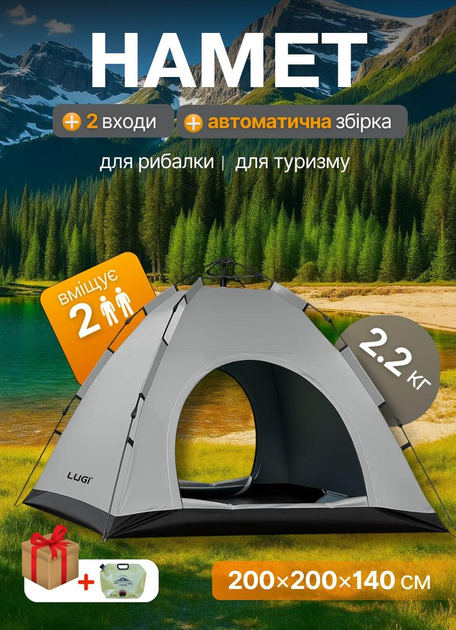 Автоматична палатка туристична 2 місцева 200х200х140 см туристичний намет із двома входами та гачком для освітлення для кемп