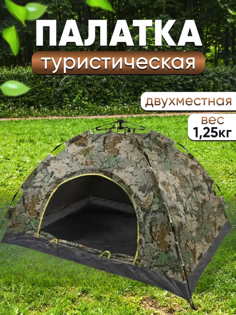Намет туристичний автоматичний 2-місний для риболовлі та кемпінгу (200х200х135см) Камуфляж