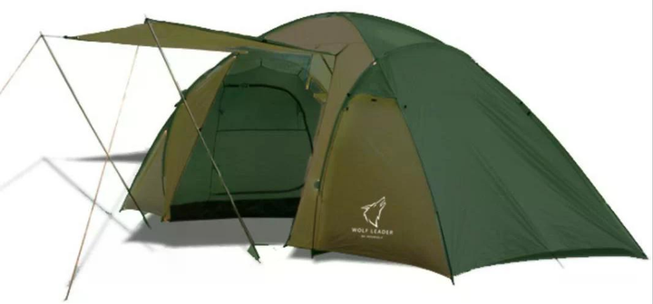 Двокімнатний кемпінговий намет Wolf Leader WL-P222 на 4 особи з великим тамбуром та двома входами, Зелений