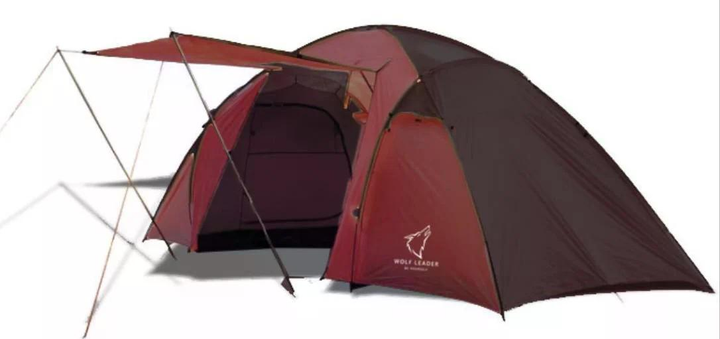 Двокімнатний кемпінговий намет Wolf Leader WL-P222 для 4-х осіб з двома спальнями висотою 210 см, Бордовий
