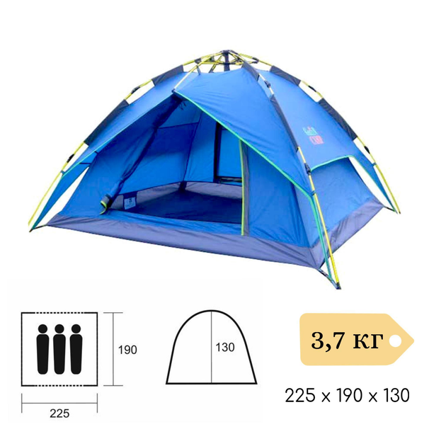 Намет 3 місний 2.0 х 1.5 х 1.4 метри туристичний Швидка установка Фіолетовий (YU8SH7937)
