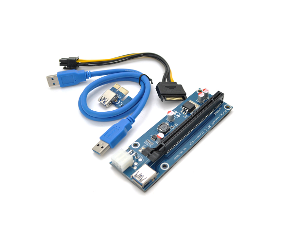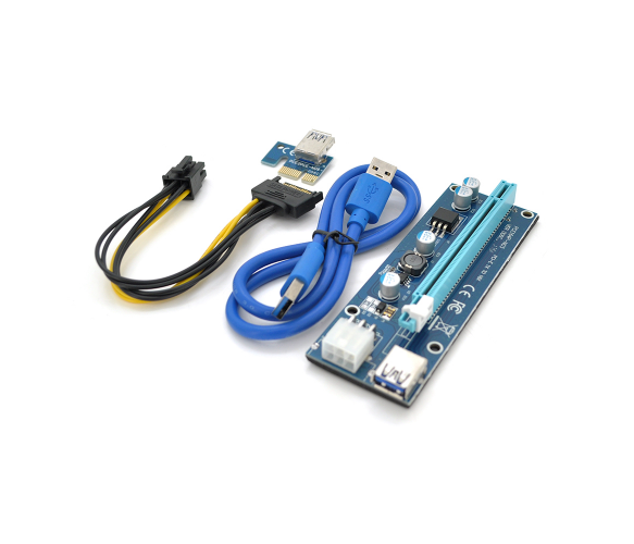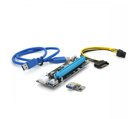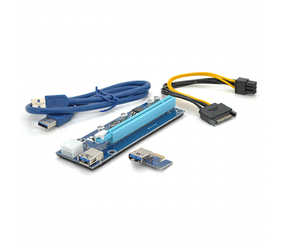 Riser PCI-EX, x1-x16, 6-pin SATA-6 pin, USB 3.0 AM-AM 0,6 м (синій) , конденсатори HS06 - 270, Пакет