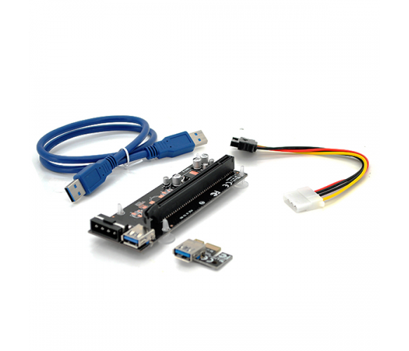 Riser PCI-EX, x1-x16, 4-pin MOLEX, SATA-4Pin, USB 3.0 AM-AM 0,6 м (синій) , конденсатори CS 220 16V, Пакет