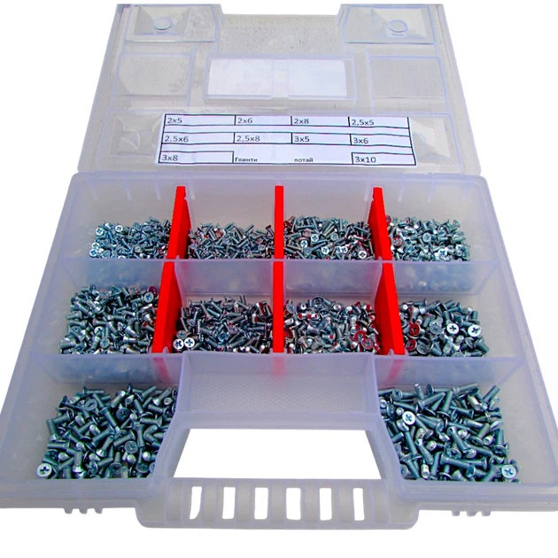 Набір гвинтів М2 / М2.5 / М3 (2000шт) в органайзері — для сматрфонів, ПК та ноутбуків, Metalvis