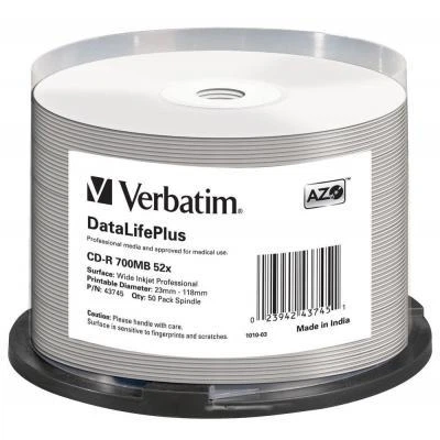 Диск CD Verbatim CD-R 700Mb 52x Cake box Printable (43745)