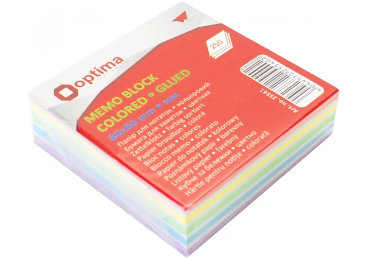 Папір для нотаток 80х80 мм "Люкс" Optima, 250 арк., проклеєний, кольоровий