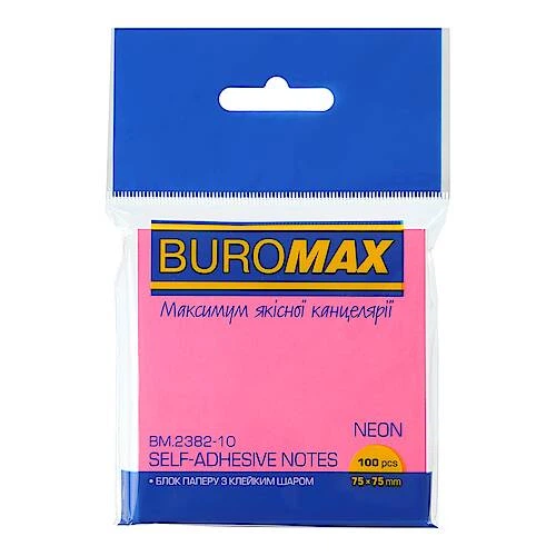 Блок для заметок NEON, 75х75мм, 100арк., рожевий 3 шт. в упаковку Buromax (BM.2382-10)